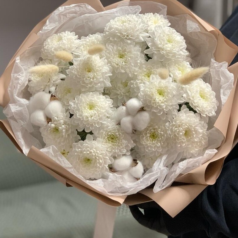 Букет «Хризантемы хлопок лагурус»