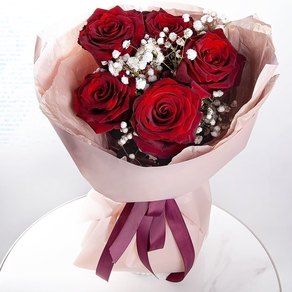 Букет «Иллюзии и Мечты» из роз и гипсофил