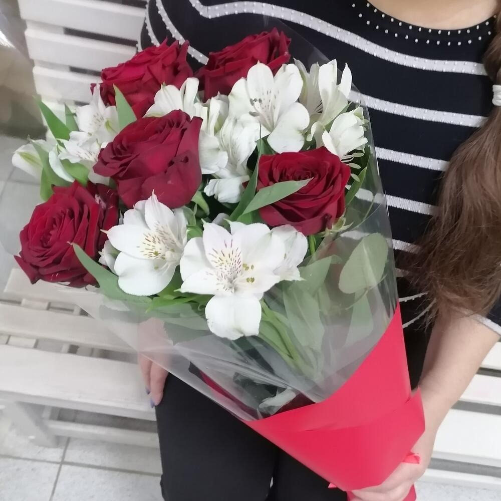 Букет «Интрига» из роз и альстромерий