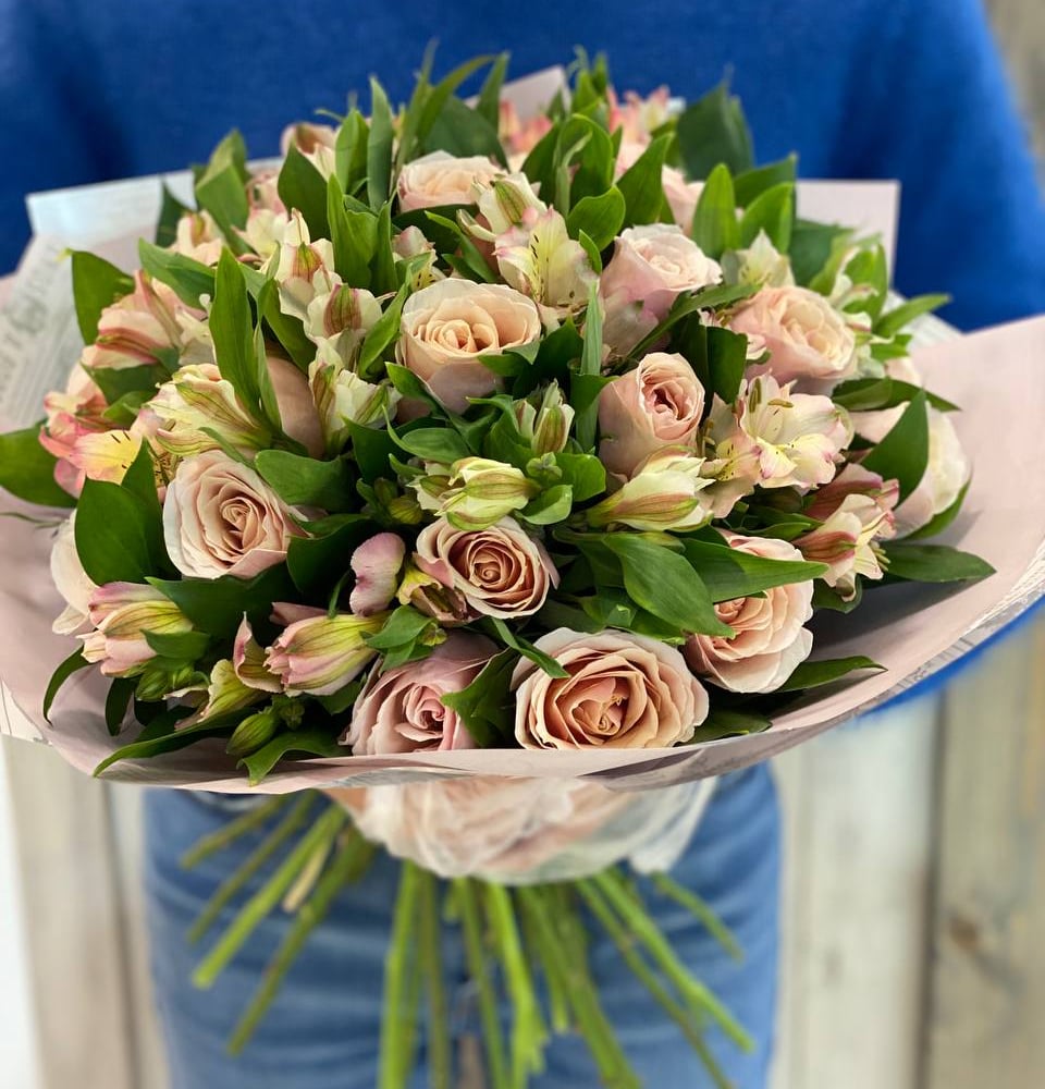 Букет «Искренний мотив» из роз и альстромерий