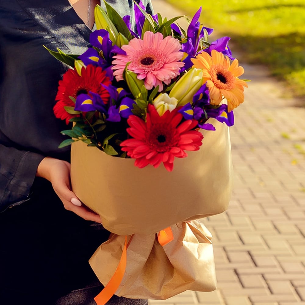 Букет «Из лилий, гербер и ирисов, стандартный»