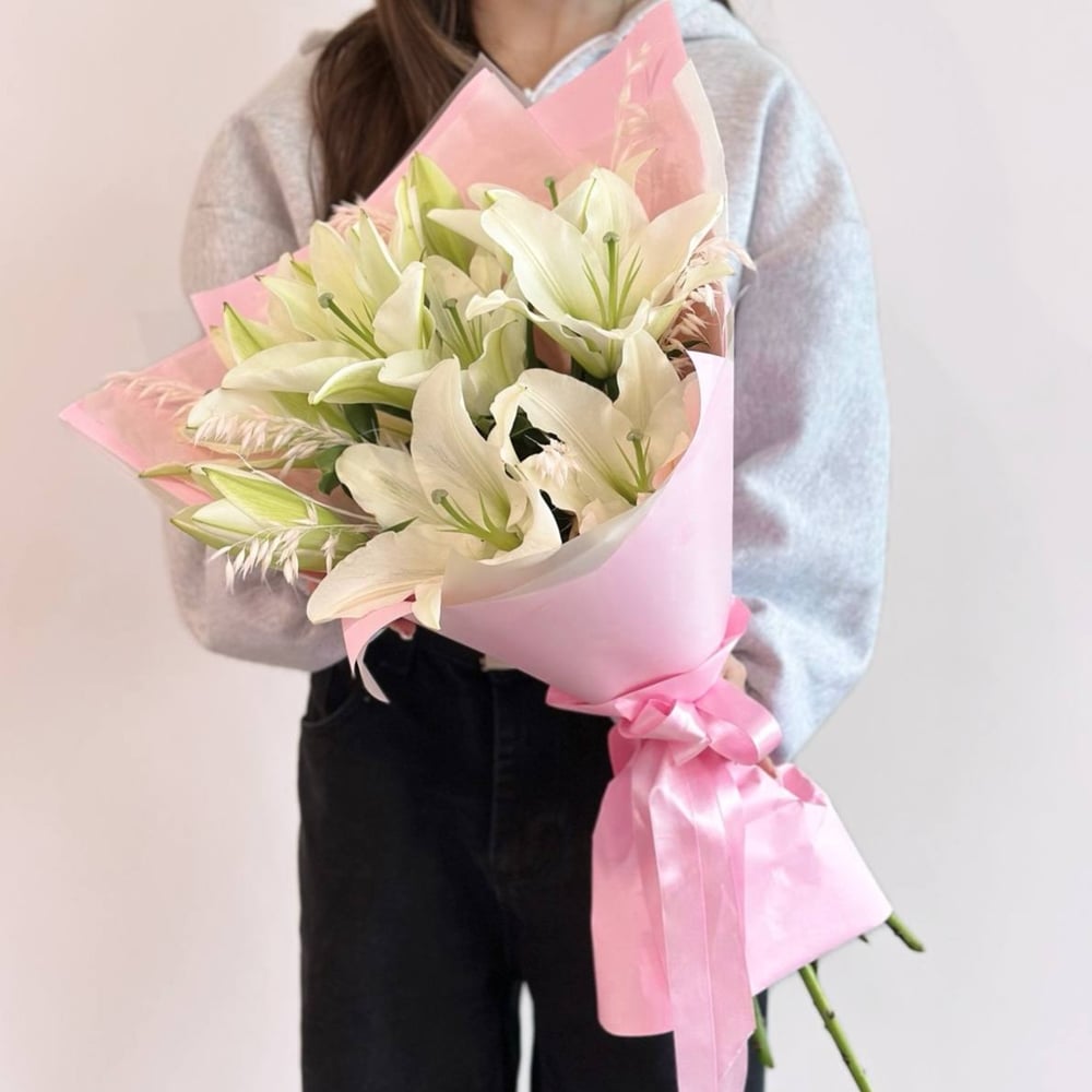 Подарите себе или своим близким кусочек весны с нашим изысканным букетом из лилий в нежной упаковке! Эти великолепные цветы не только вдохновляют своим утончённым видом, но и наполняют окружающее пространство нежным ароматом. Каждая лилия является символом чистоты и благородства, что делает наш букет идеальным подарком для любых торжеств — от свадеб до юбилеев или просто как знак внимания к дорогому человеку. Нежная упаковка добавляет вашему подарку особый шарм и изящество, подчеркивая великолепие своих цветов.