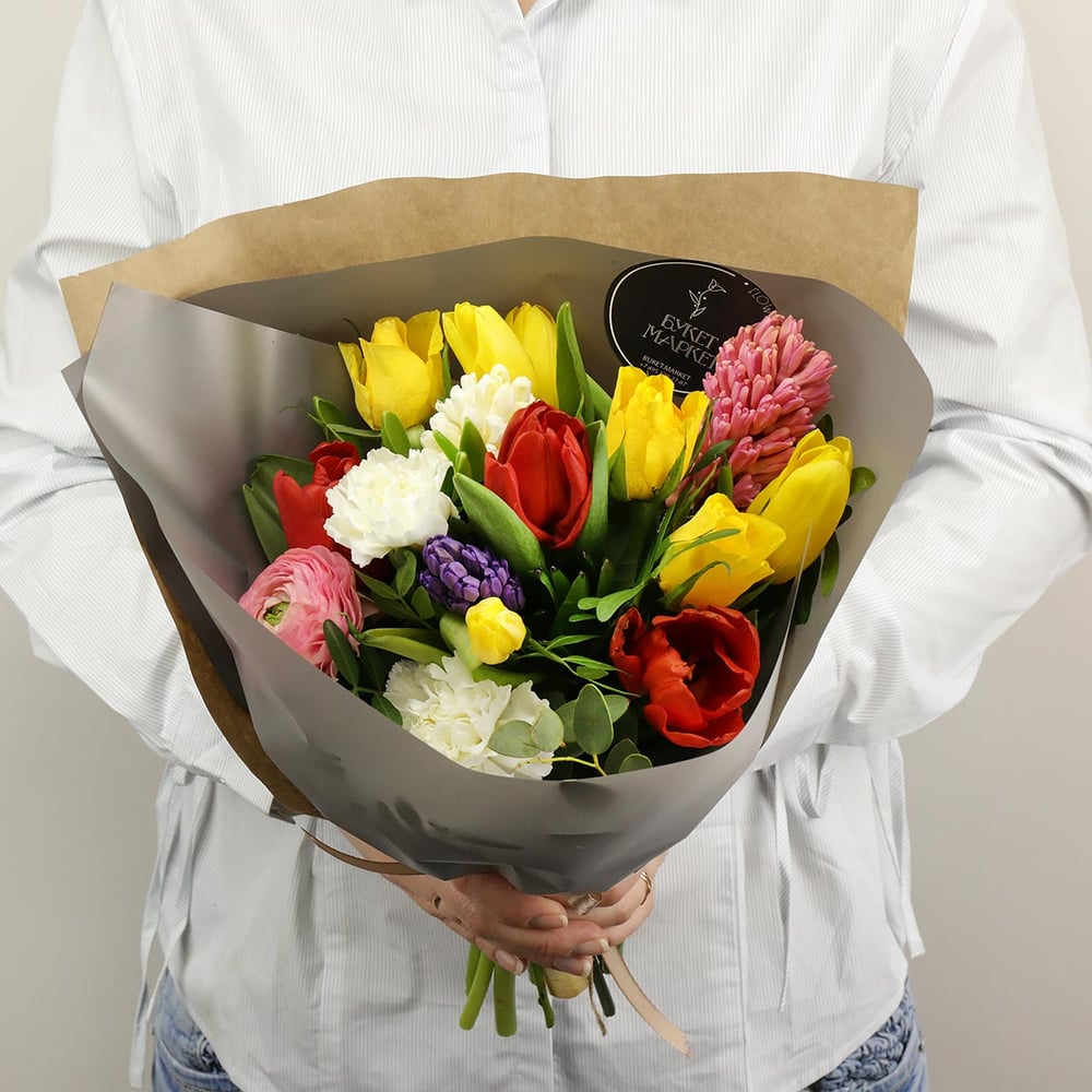 Этот яркий и весенний букет наполнен нежным ароматом и дарит незабываемые чувства!