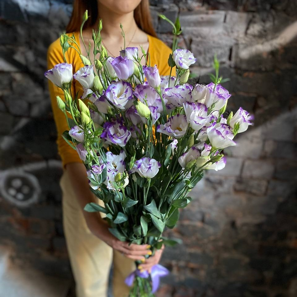 Букет из 11 бело-фиолетовых эустом (лизиантусов)