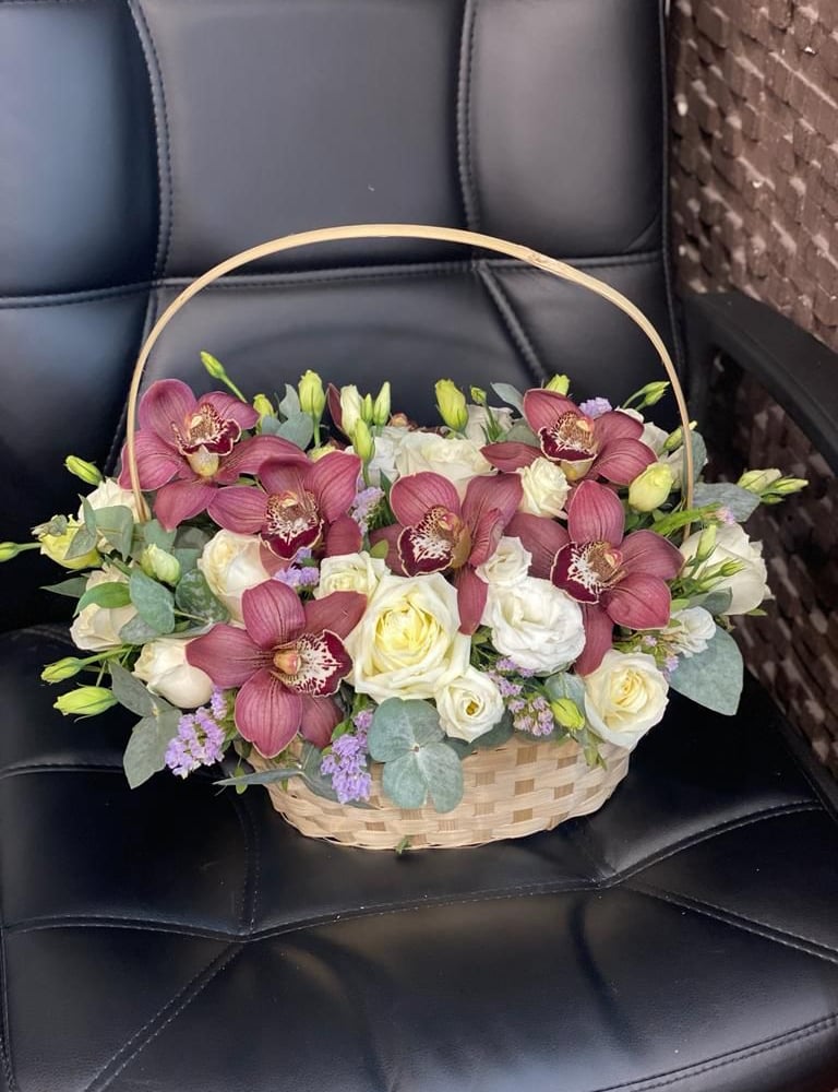 Корзина с цветами «Капучино» из орхидей и роз