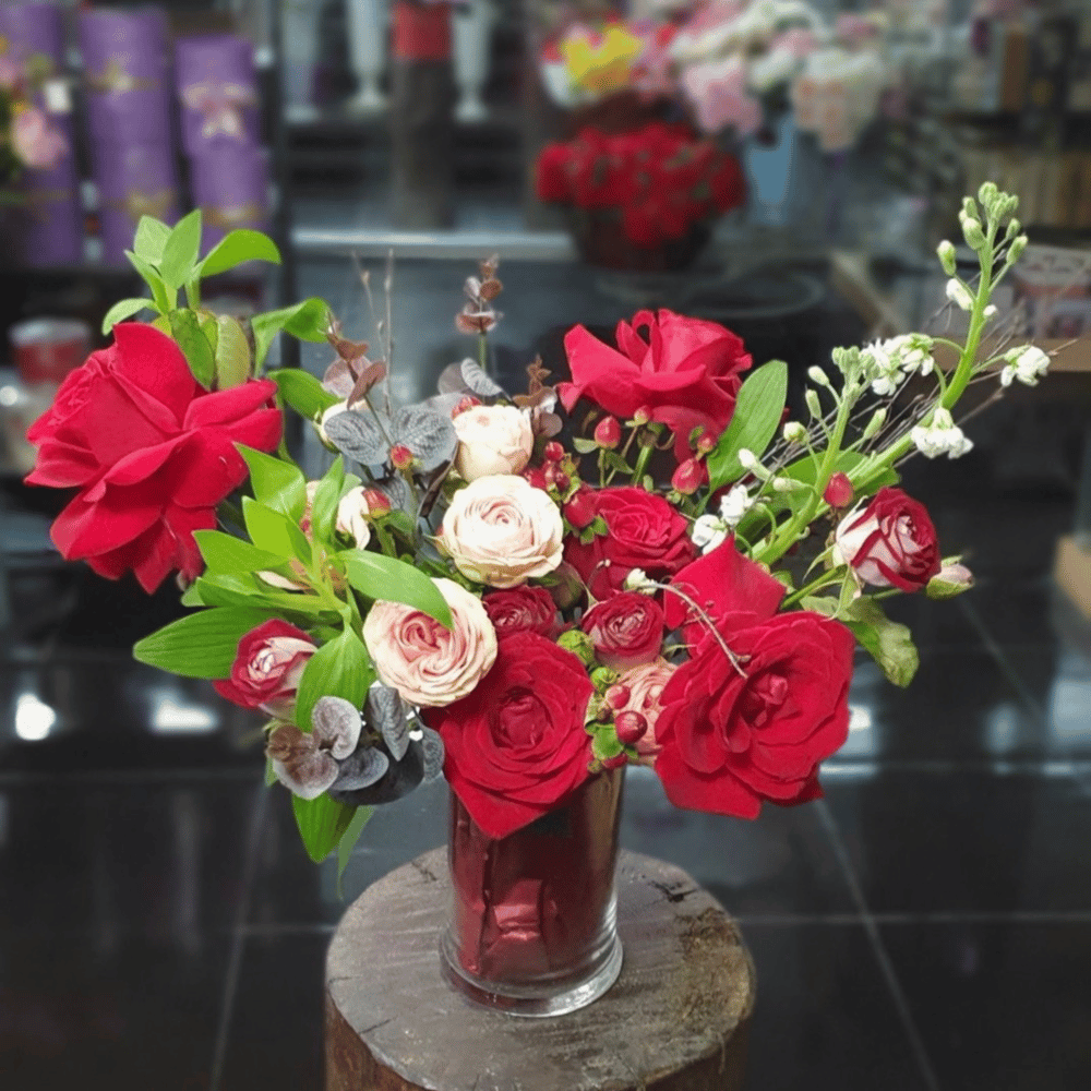 Композиция «Карнавал цветов» из роз и экзотических цветов