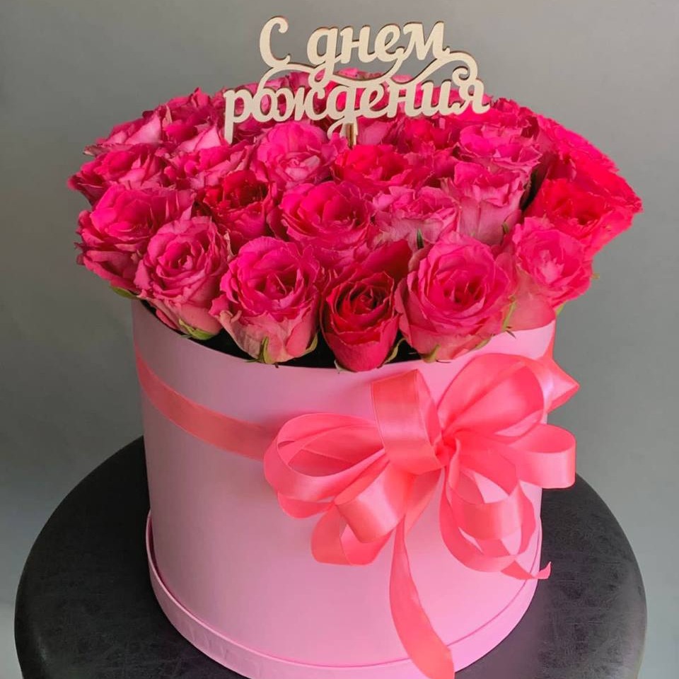 Шляпная коробка с цветами «Кенийская роза в коробке»