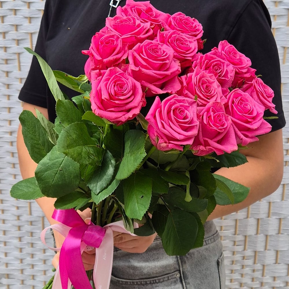 Ярко розовая роза под ленту 15шт.