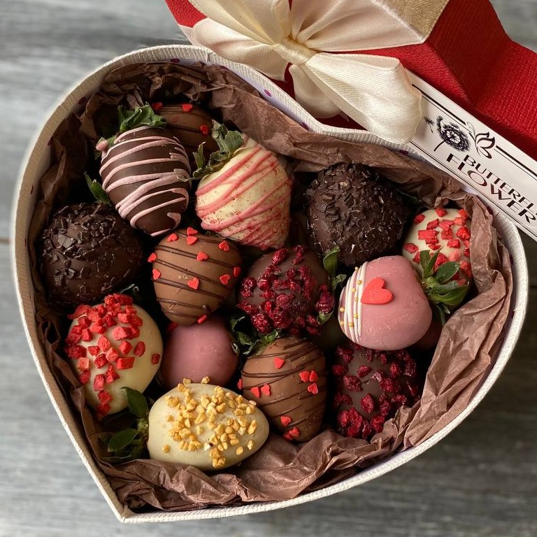 Композиция из клубники в шоколаде в дизайнерской коробке