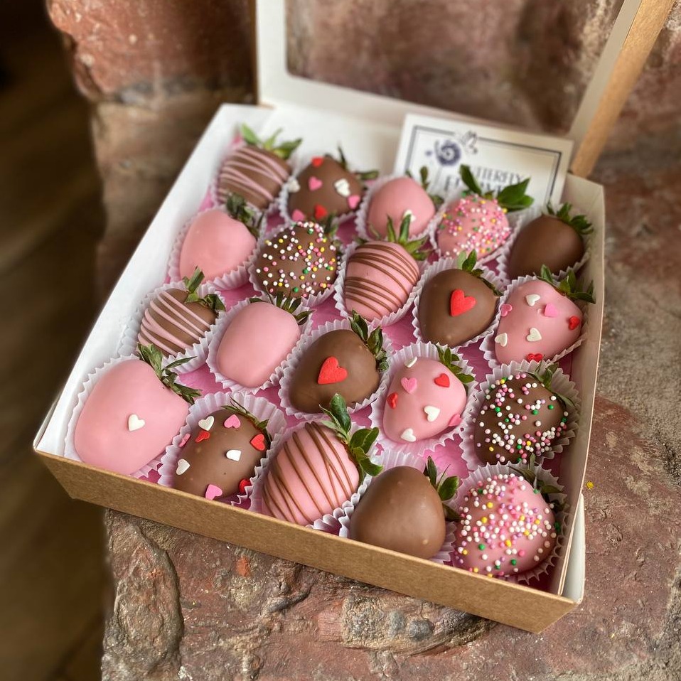 Композиция из клубники в шоколаде в дизайнерской коробке