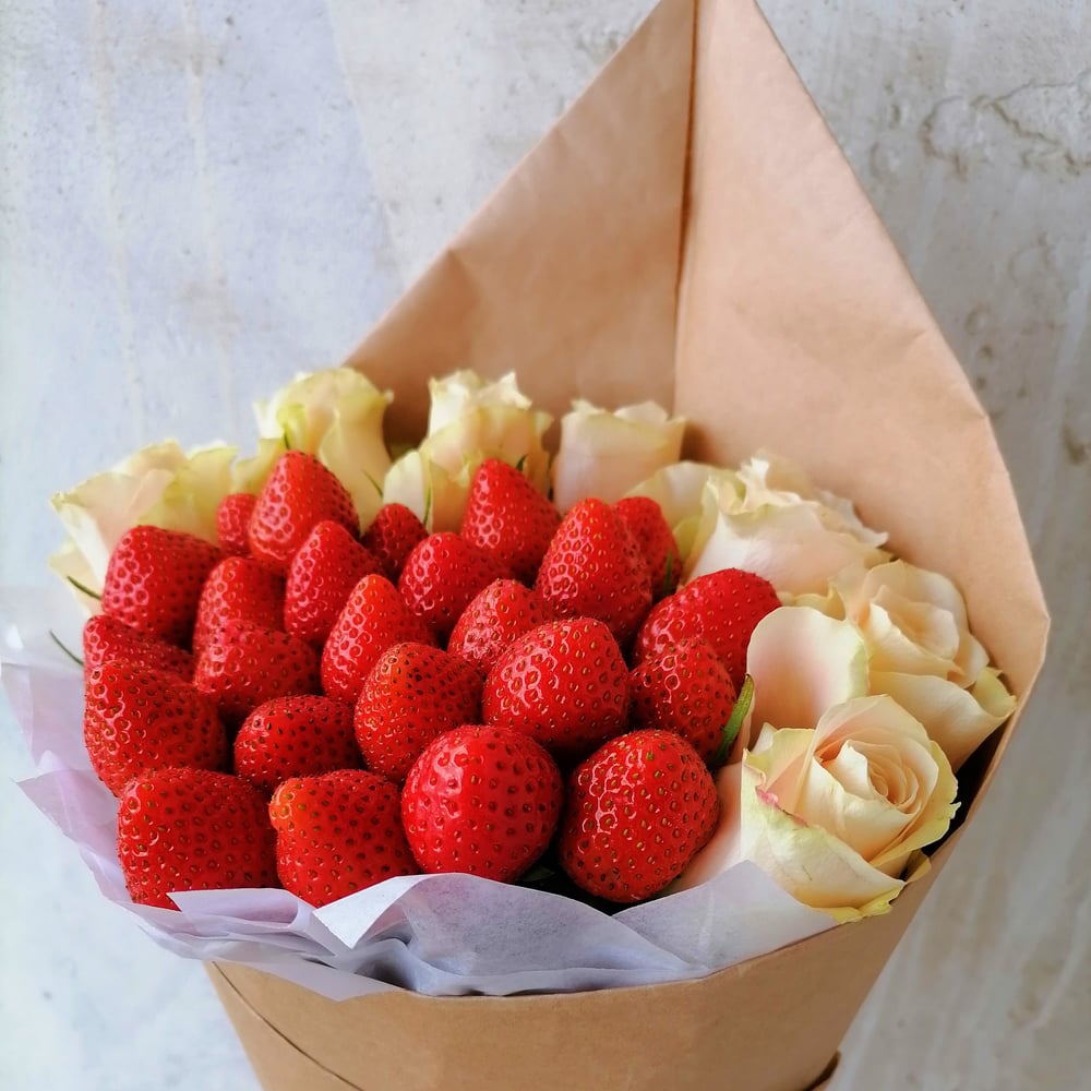 Вкусная клубника и нежные розы. Самые любимые букеты для девушек. Розы в букете могут быть белыми или розовыми. Что будет в наличии. .