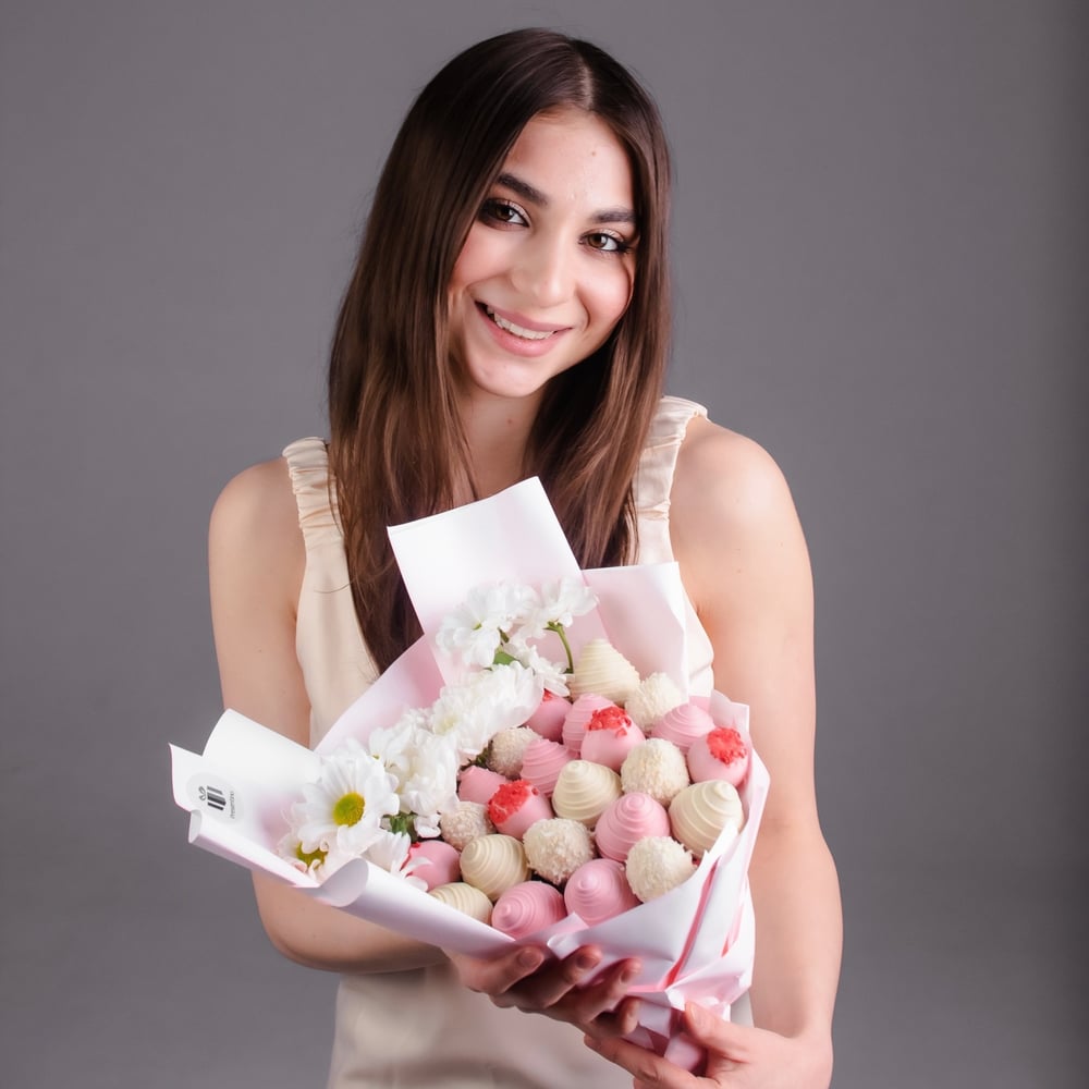 Ищите чем удивить девушку? вариант цветы, как обычно, уже не цепляет? тогда клубничный букет идеально закроет ваш запрос. Подарит невероятные эстетические и вкусовые эмоции. Легкий и пышный ...