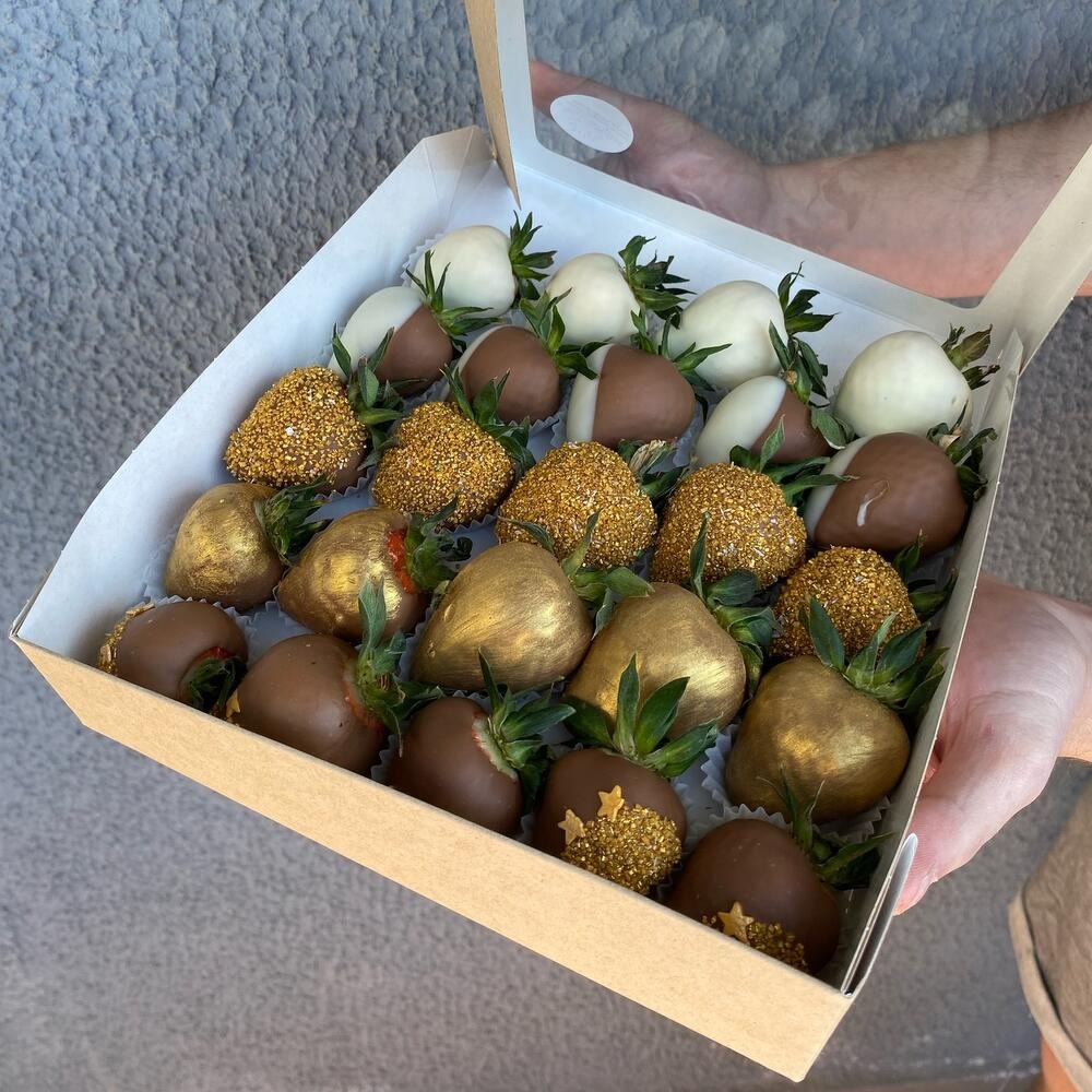 Состав: Отборная клубника, бельгийский шоколад, кондитерские посыпки, кондурин Вес товара: 600 гр. Размер: Высота - 25 см Ширина - 25 см