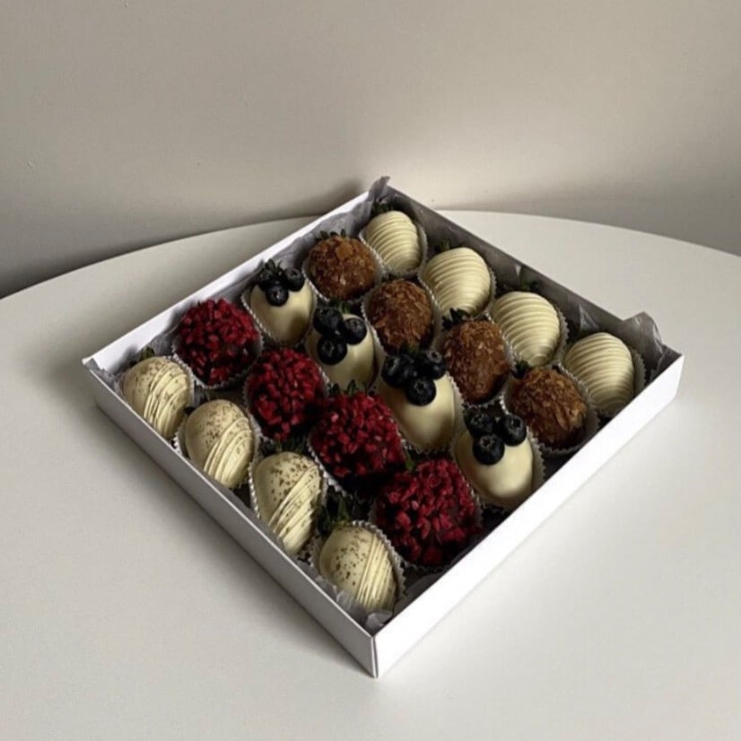 Отборная клубника, голубика, сублимированная малина, вафельная крошка, съедобное золото