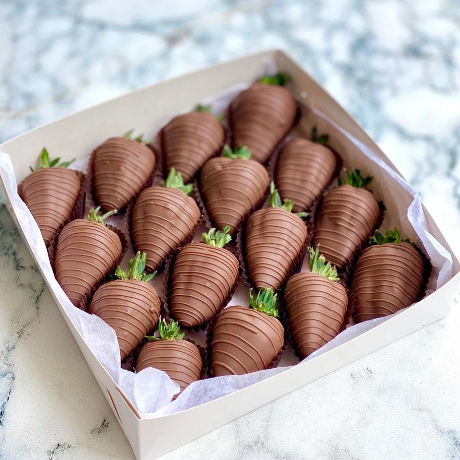 Состав:Клубника свежая отборная ,Шоколад молочный Callebaut (Бельгия) Вес:680 гр. Ароматная клубника в молочном шоколаде. Размер коробки: 20х20х5 см Кол-во клубник в наборе может изменятьс...