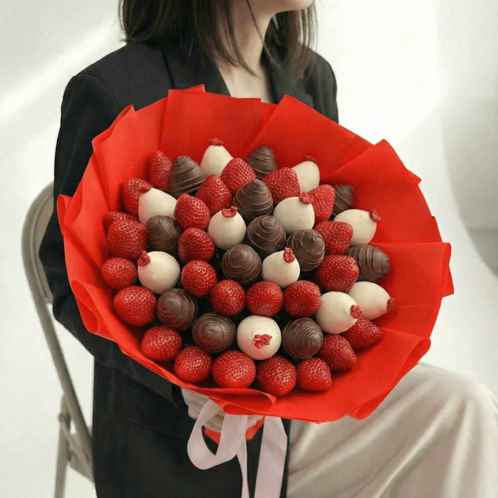 — 950 грамм свежей клубники в шоколаде — Шоколад :белый, молочный — Декор : шоколадные полоски, кусочки сублимированной малины — Композиции собираются по весу, а не по количеству: ягоды могут от…