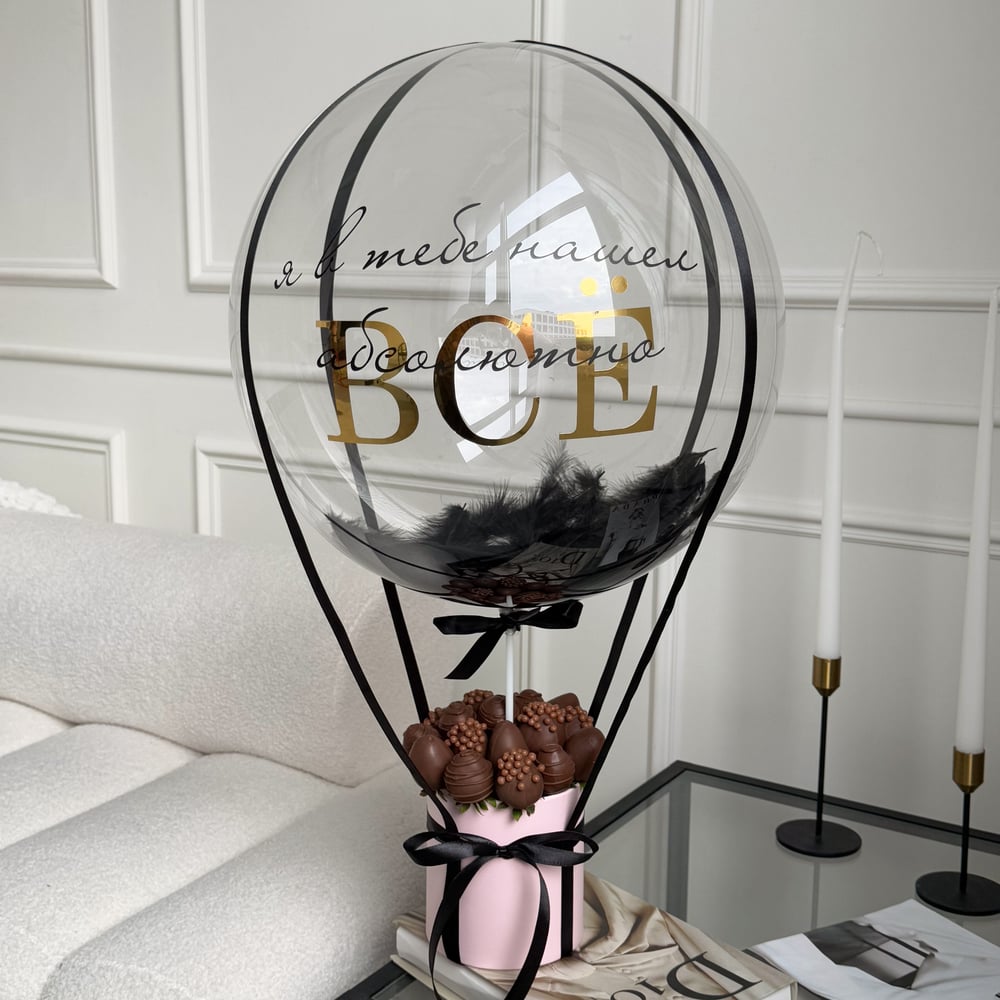 В состав набора входит: — 450 грамм свежей клубники в шоколаде шоколад: молочный декор: хрустящие шоколадные шарики, шоколадные полоски — Воздушный шар с перьями и индивидуальной надписью ...