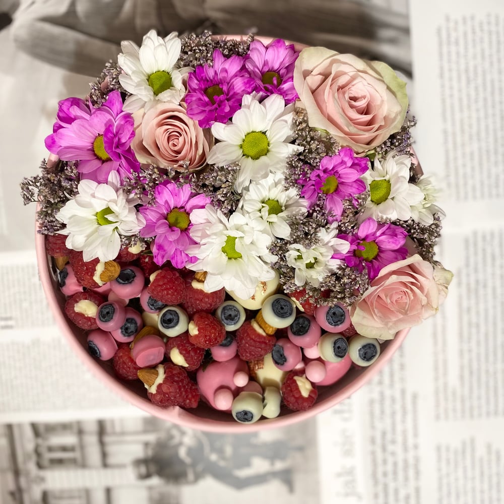 Отборная клубника,голубика,малина, бельгийский шоколад белый и молочный состав: какао тертое (Санто-Доминго); сахар; масло какао; эмульгатор: соевый лецитин; натуральный ароматизатор: ваниль. Ми...
