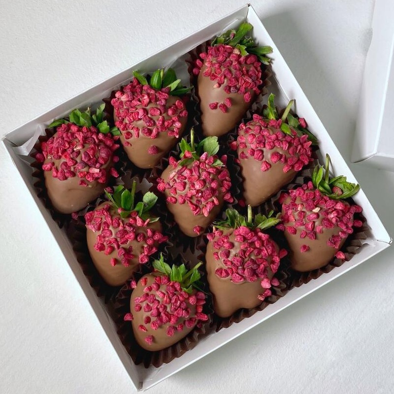 Состав: Клубника свежая отборная , Шоколад молочный Callebaut (Бельгия) ,Малина сублимированная Вес:350 гр. Ароматная клубника в бельгийском молочном шоколаде с сушеной малиной. Размер коробки: 15х15х3 см *Кол-во клубник в наборе может изменяться в зависимости от калибра ягод. Каждый набор мы перевязываем атласной лентой, дополняем карточкой с рекомендациями по хранению, фирменным пакетом для удобной транспортировки и красивой открыткой с Вашим текстом по желанию. Срок хранения клубники в шоколаде - 2 суток. Мы рекомендуем насладиться ягодами в течение 12 часов с момента покупки и при необходимости хранить набор в холодильнике при температуре от +4 до +10 С Перед употреблением подержать при комнатной температуре 15 минут. Bon Appètit 🎀