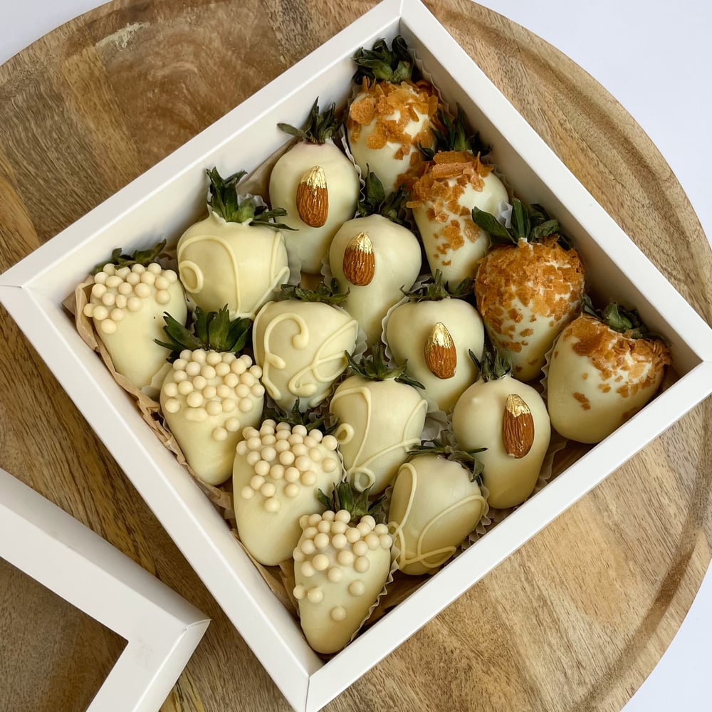Состав: — 4 ягоды в белом шоколаде с декором шоколадные шарики — 4 ягоды в белом шоколаде с декором цельный орех миндаль — 4 ягоды в белом шоколаде с декором вафельная стружка — 4 ягоды в бе...