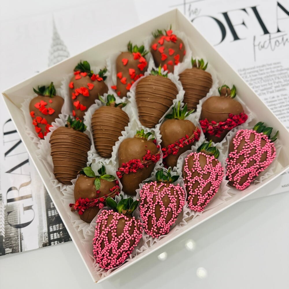 Свежая клубника в шоколаде с кондитерскими посыпками (сублимированная малина)