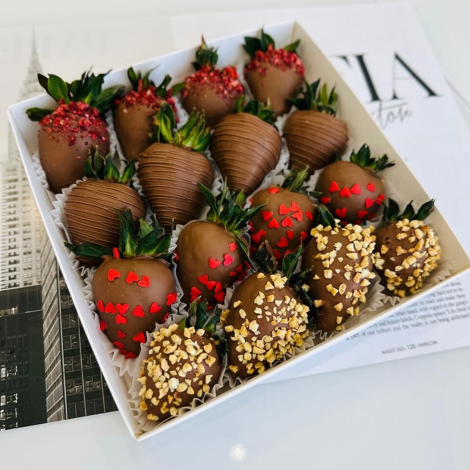 Свежая клубника в шоколаде с кондитерскими посыпками ( арахис, сублимированная клубника, арахис)