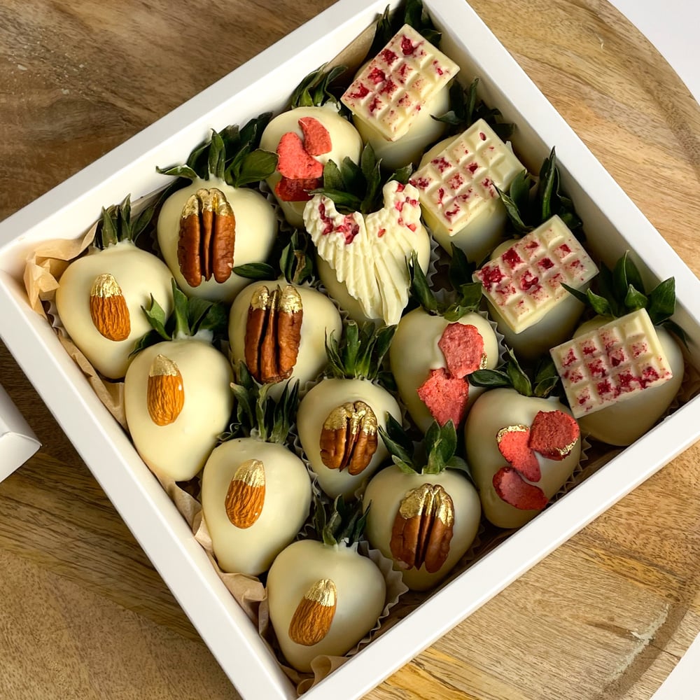 Состав: — 4 ягоды в белом шоколаде декор: миндаль цельный — 4 ягоды в белом шоколаде декор: мини шоколадки из белого шоколада с сублимированной малиной — 4 ягоды в белом шоколаде декор: цельный орех пекан — 3 ягоды в белом шоколаде декор: слайсы сублимированной клубники — 1 ягода в белом шоколаде декор: крылья из шоколада и сублимированной малины Примечание: — Клубничный набор имеет прозрачную крышку и перевязан атласной лентой с бантом — Размеры упаковки 21*21 см — Натуральный продукт. Срок годности клубники в шоколаде до 24 часов. Храните ягоду в холодильнике при температуре +4..+8 градусов