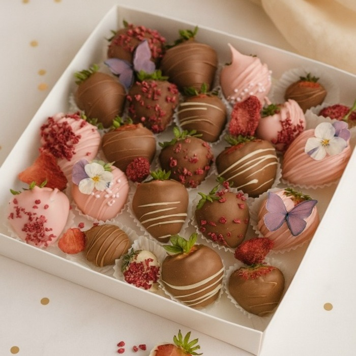 Почувствуйте нежное прикосновение лета с нашим набором "Клубничный поцелуй"! Спелая, сочная клубника, окутанная в дуэте изысканного молочного и соблазнительного розового шоколада, подарит незабывае...