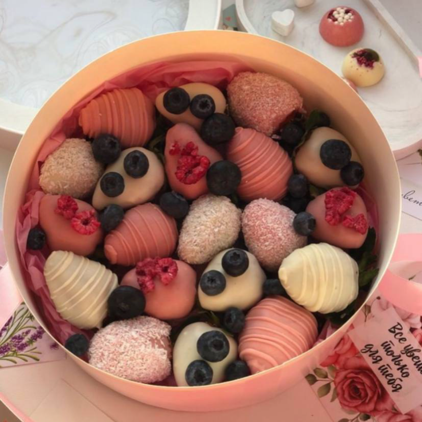 Клубника в шоколаде с голубикой и сублимированной малиной