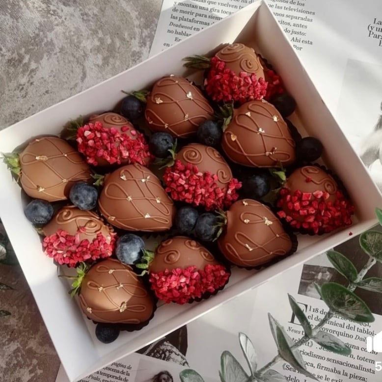 Клубника в шоколаде сублимированная малина, съедобное золото, голубика