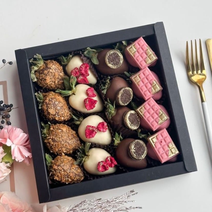 Отборная клубника, сублимированная малина, орео,вафельная крошка, шоколад 2 вида