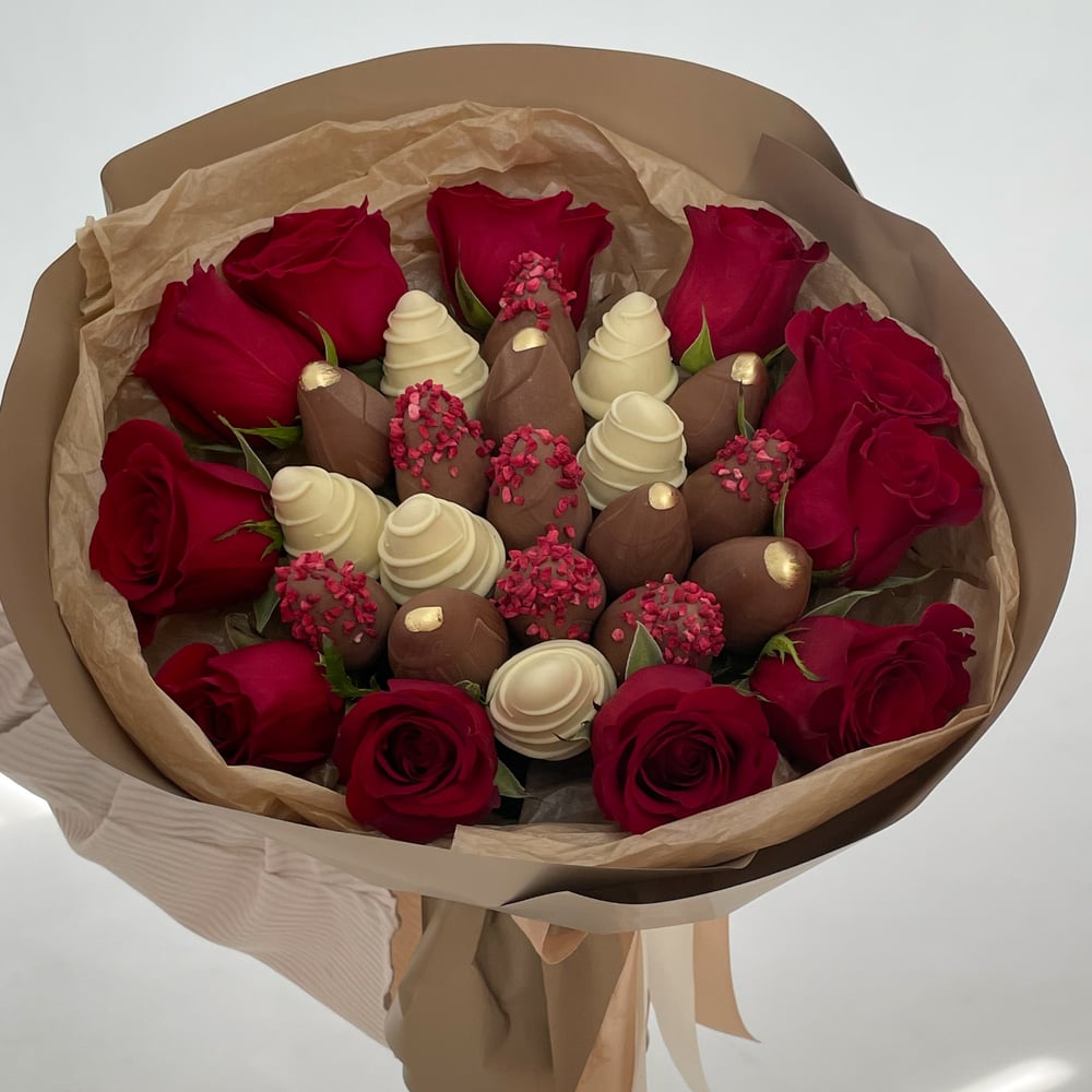 Клубника в шоколаде с розами Мишель