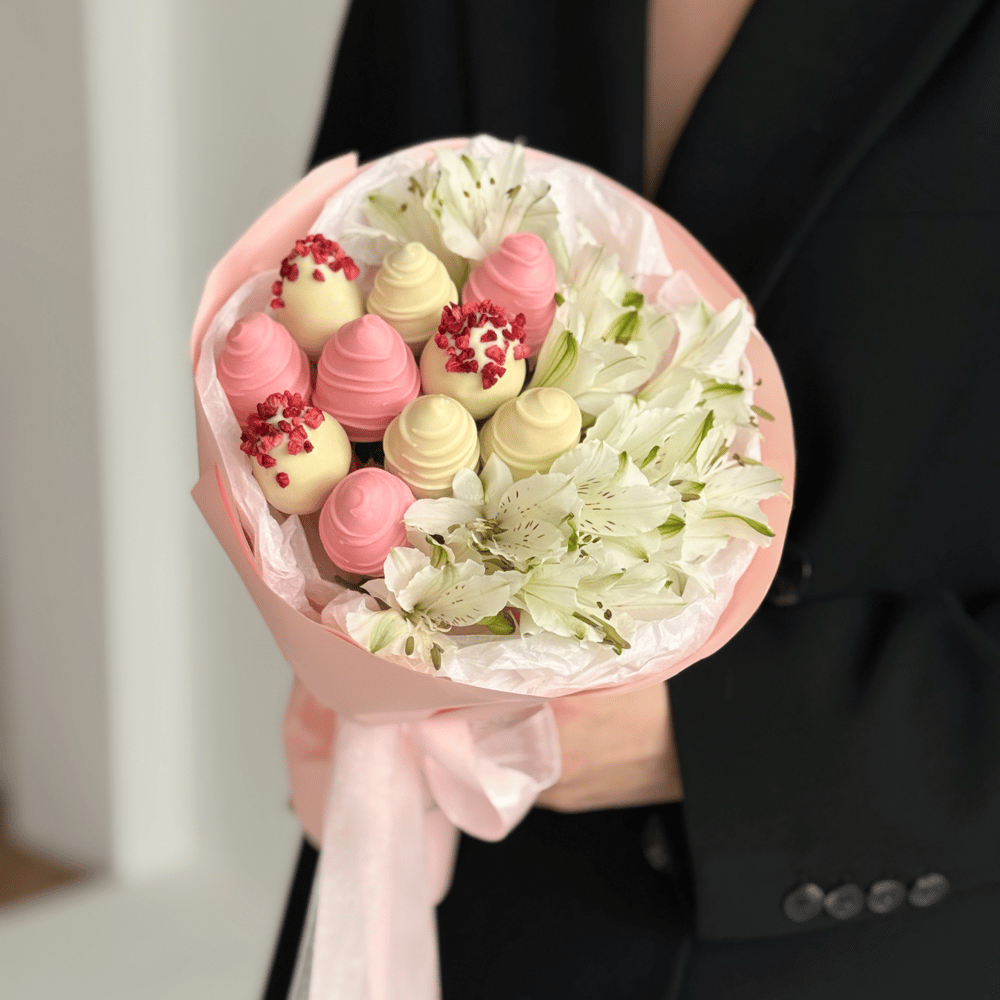 — Композиции собираются по весу, а не по количеству: ягоды могут отличаться по размеру и сорту, поэтому точное количество может варьироваться — В букете 300 г клубники, примерно 10 ягод — Примерный размер: 30 см в диаметре, 40 см в высоту — каждый букет уникален, ведь он создаётся вручную — Внутри — брошюра с информацией о сроке годности, хранении и транспортировке — Дизайнерская упаковка с атласной лентой 🎀 — Клубника бережно упакована в прозрачную плёнку — для защиты от внешних факторов и от контакта с цветами — Цветы установлены на акваножке — специальной упаковке с водой для поддержания свежести — В каждый букет добавляется инструкция по уходу за цветами и кризал — подкормка для срезанных растений Натуральный продукт. Срок годности — до 24 часов. Хранить в холодильнике при температуре +4…+8°C ❄️