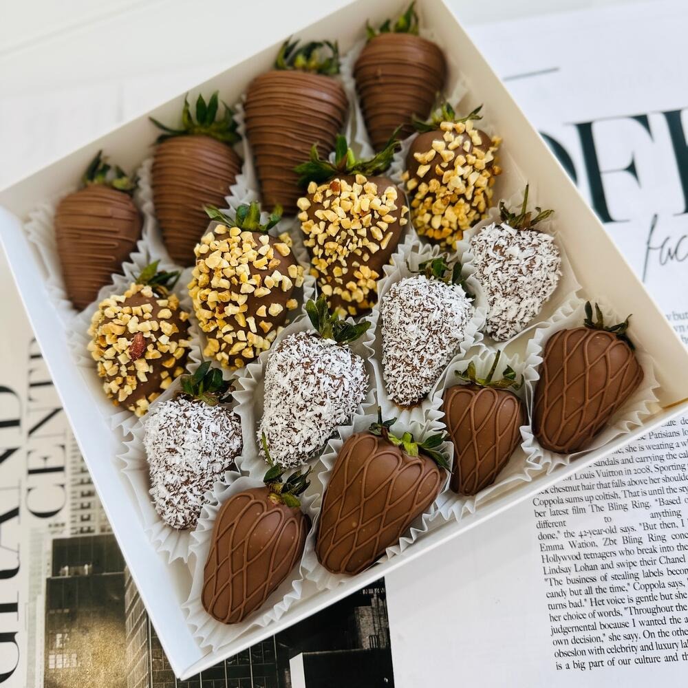 Свежая клубника в бельгийском шоколаде с кондитерскими посыпками ( кокос, дробленый арахис) 16 штук