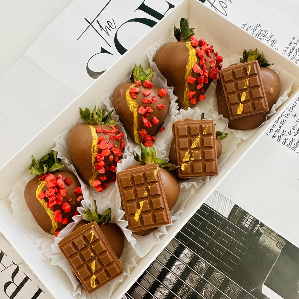 Свежая клубника в бельгийском шоколаде с кондитерскими посыпками. 8 штук.