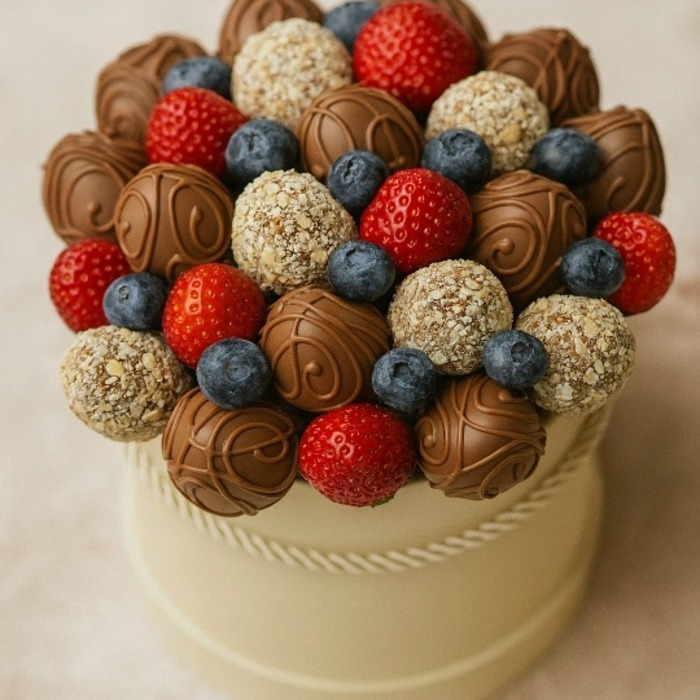 Этот набор — воплощение утончённого вкуса. Сочные клубника и голубика, покрытые нежным бельгийским шоколадом и ореховой крошкой, собраны в стильную композицию. Каждая деталь создана для того, чтобы...