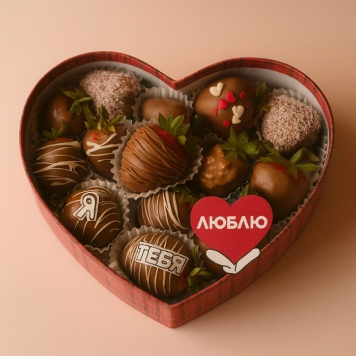 Подарите своей половинке незабываемое признание в любви с нашим восхитительным набором клубники в шоколаде в коробке в форме сердца Я тебя люблю! Это идеальный способ выразить самые нежные и искренние чувства, сочетая в себе чувственное наслаждение и трогательную романтику.