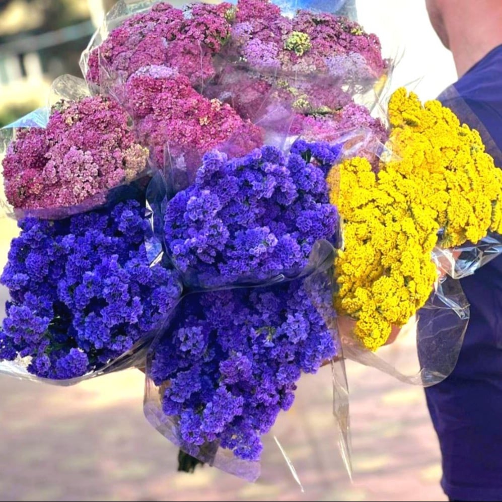 Яркий букет из статицы. Можно создать монотонную композицию или использовать несколько разных цветов.
