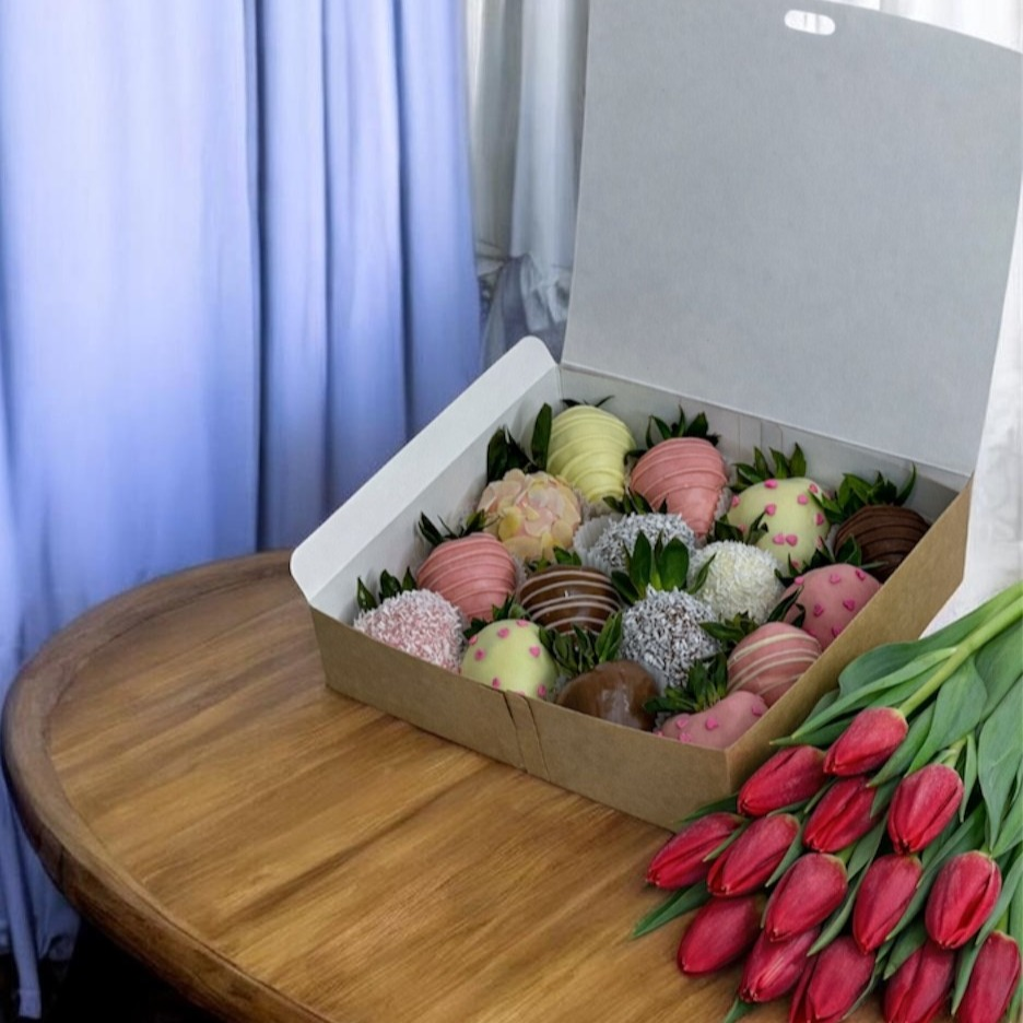 Ищите чем удивить девушку на 8 марта? Вариант цветы, как обычно, уже не цепляет? Тогда клубничный набор с тюльпанами идеально закроет Ваш запрос. Подарит невероятные эстетические и вкусовые эмо...