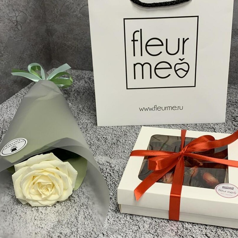 Подарок, который точно удивит! 9 отборных ягод из солнечной Армении. Ароматная клубника в молочном шоколаде украшенная слайсами свежих ягод . Классическая белая роза высотой 50 см Размер коробки: 15х15х3 см Кол-во клубник в наборе может изменяться в зависимости от калибра ягод. Каждый набор мы перевязываем атласной лентой, дополняем карточкой с рекомендациями по хранению, фирменным пакетом для удобной транспортировки. Срок хранения клубники в шоколаде - 2 суток. Мы рекомендуем насладиться ягодами в течение 12 часов с момента покупки и при необходимости хранить набор в холодильнике при температуре от +4 до +10 С Перед употреблением подержать при комнатной температуре 15 минут. Порадуйте близких на 8 Марта, выпускной, День знаний, День матери, День Победы, день рождения, день свадьбы, День святого Валентина, День семьи, День учителя, рождение ребенка, юбилей. Господин Цвет