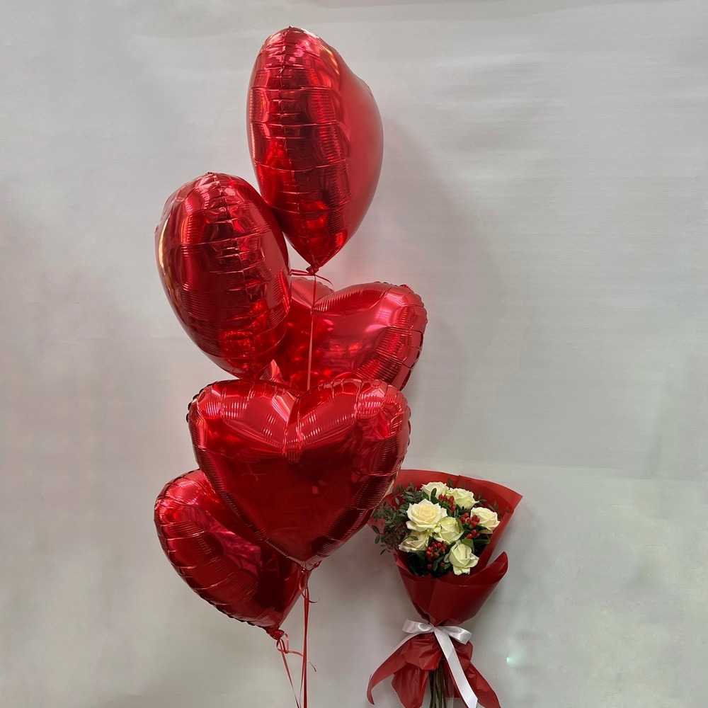 Подарочный набор «Комбо набор (цветы и шары) 1 - признание» из роз