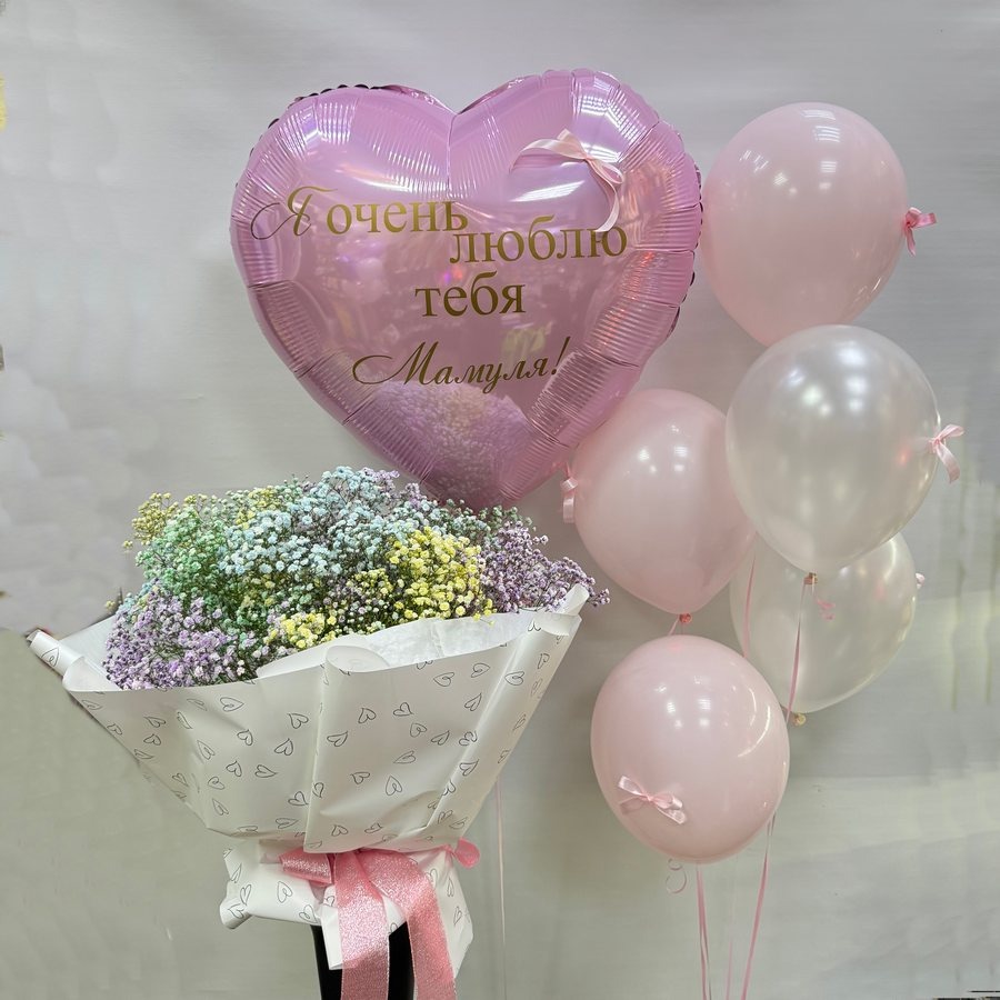 Подарочный набор «Комбо набор (цветы и шары) 9 - Мамуле» из гипсофил