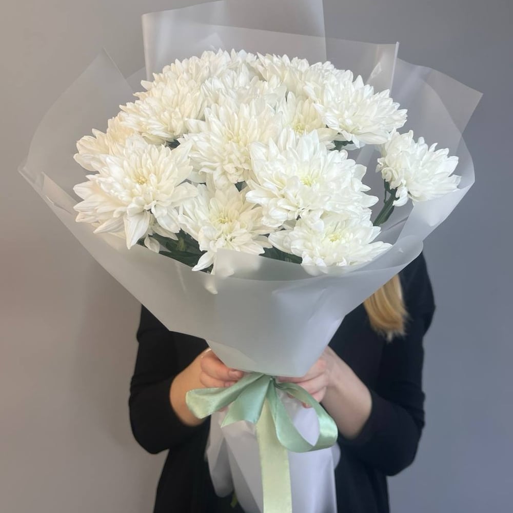 Нежный букет из трех кустовых хризантем, упакованный в стильную дизайнерскую упаковку и украшенный атласной лентой. Идеальный выбор для подарка на любой праздник или просто для того, чтобы порадова...