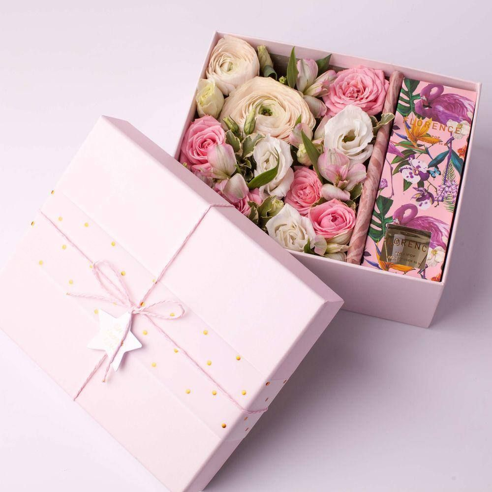 Подарочный набор «Композиция в коробке Лили» из роз и альстромерий