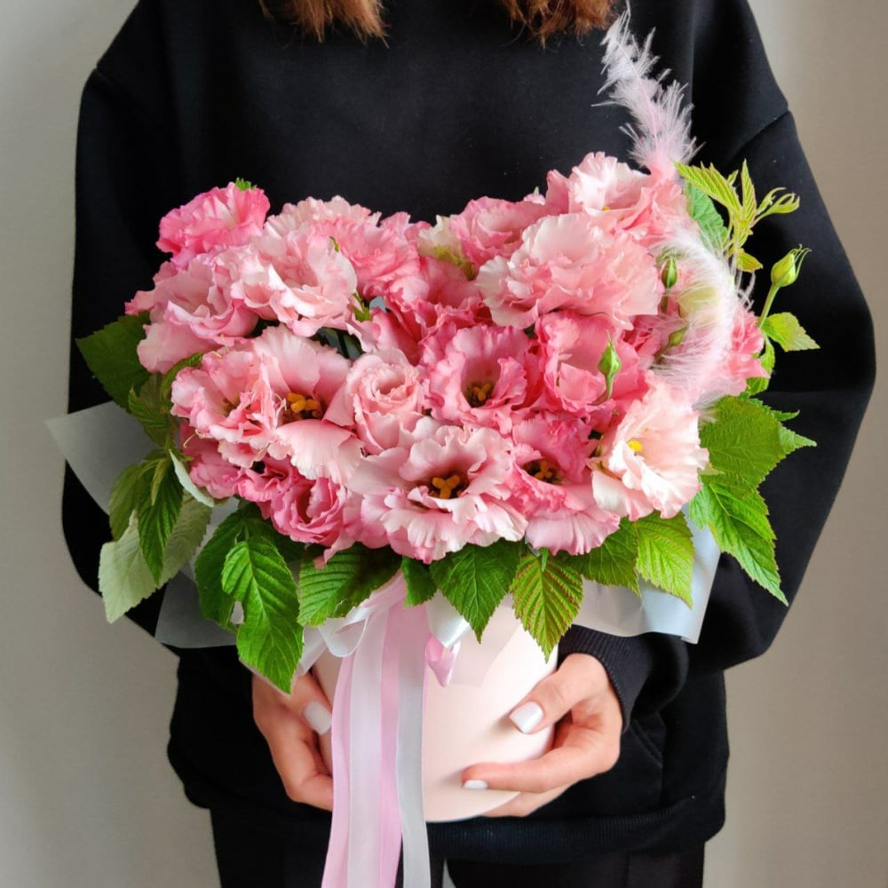 Эта композиция из эустомы и веточек малины в стильной коробке с атласными лентами выглядит невероятно нежно и романтично. Яркие, пышные цветы эустомы, расцветающие в мягких розовых оттенках, создают атмосферу весны и радости. Их бархатистые лепестки, словно облака, привлекают внимание и вызывают желание прикоснуться к ним. Каждая деталь тщательно подобрана, чтобы подчеркнуть утонченность и красоту этих цветов. Веточки малины добавляют свежести и живости, их зеленые листья контрастируют с нежными оттенками эустомы, создавая гармоничный баланс. Стильная коробка, оформленная с заботой, служит идеальным фоном для этой цветочной симфонии. Атласные ленты, завязанные вокруг коробки, придают композиции дополнительную элегантность и завершенность, делая её по-настоящему праздничной. Такой букет станет прекрасным подарком для особого случая или просто способом порадовать себя или близких. Он способен наполнить любое пространство светом и радостью, вызывая улыбки и положительные эмоции. Эта композиция — настоящий символ любви и заботы, который украсит любой момент, напоминая о том, как важно ценить красоту окружающего мира.