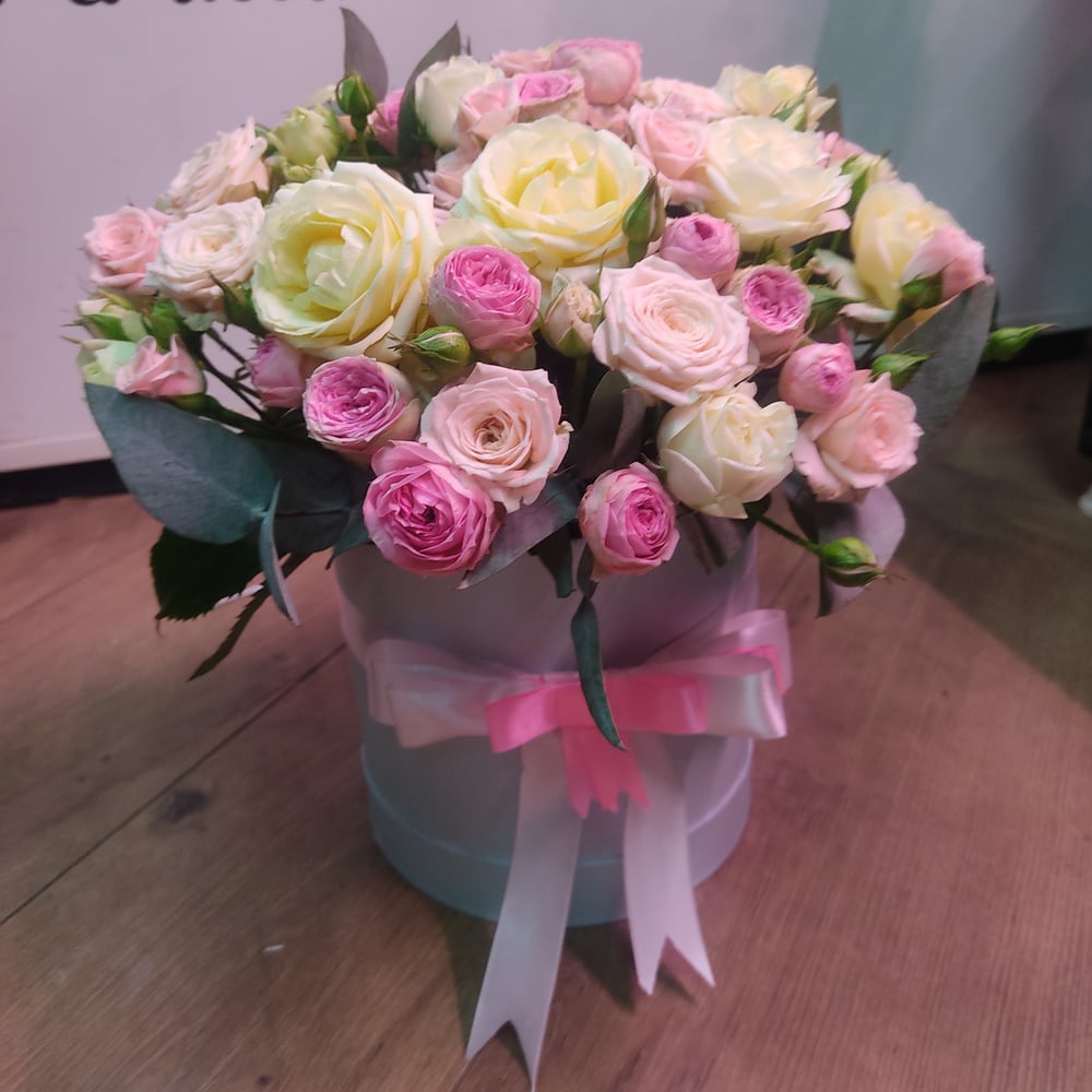 Шляпная коробка с цветами «Композиция "Гармоничный аккорд"» из роз