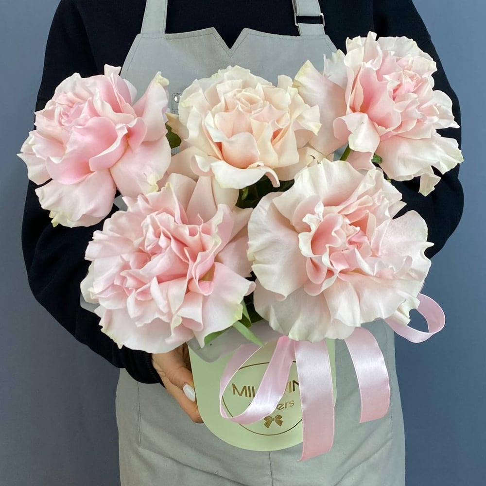 Шляпная коробка с цветами «Композиция из 5 французских роз»