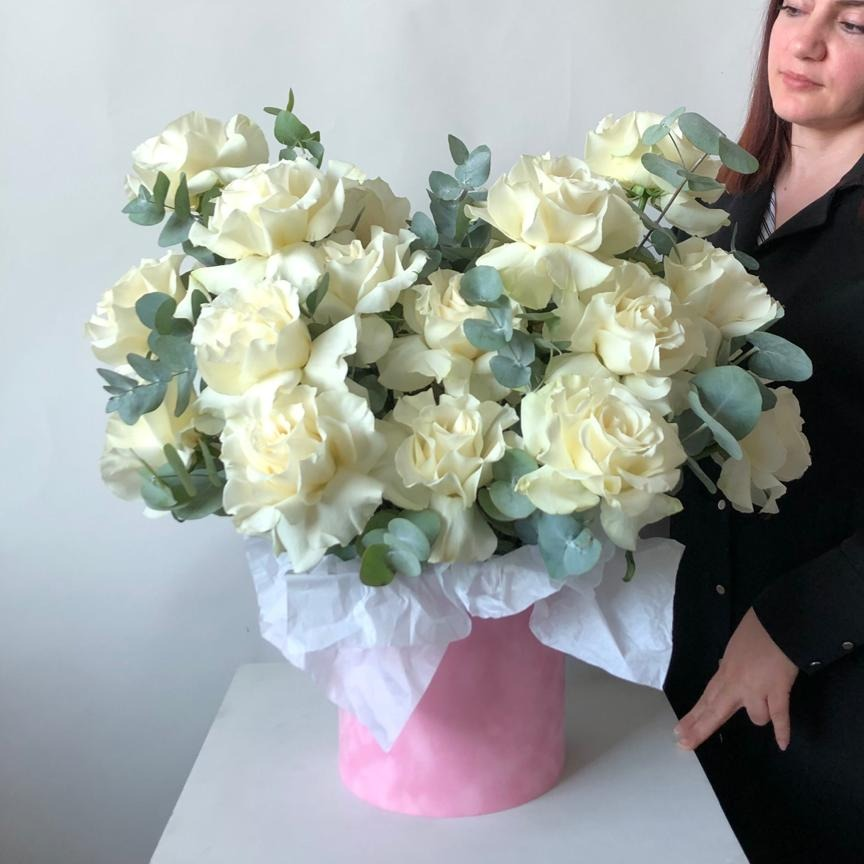 Шляпная коробка с цветами «Композиция из французских роз»