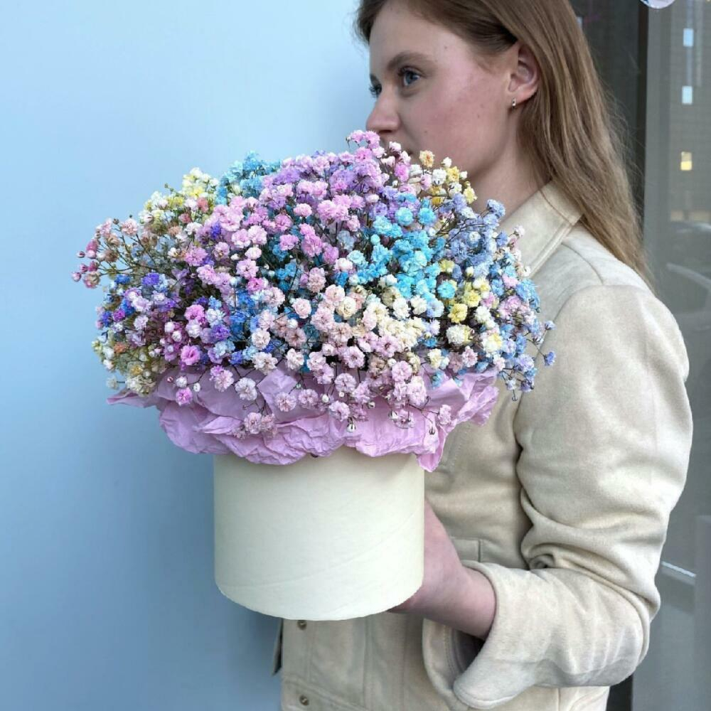 Шляпная коробка с цветами «Композиция из Гипсофилы Микс в Коробке»