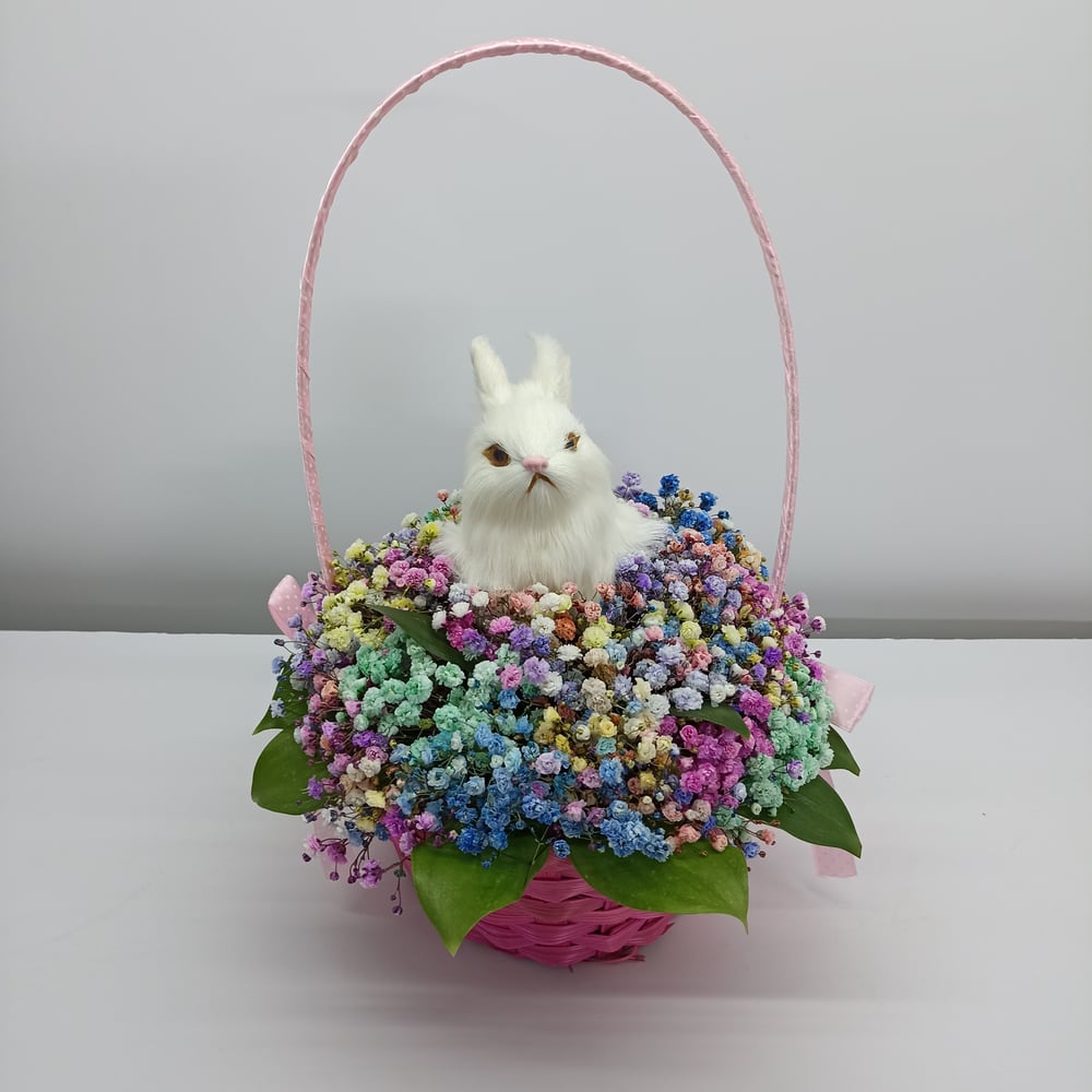 Корзина с цветами «Композиция из гипсофилы "Зайка на лужайке"»